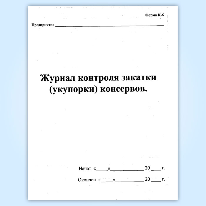 Журнал контроля закатки (укупорки) консервов (форма К-6) в Верее купить