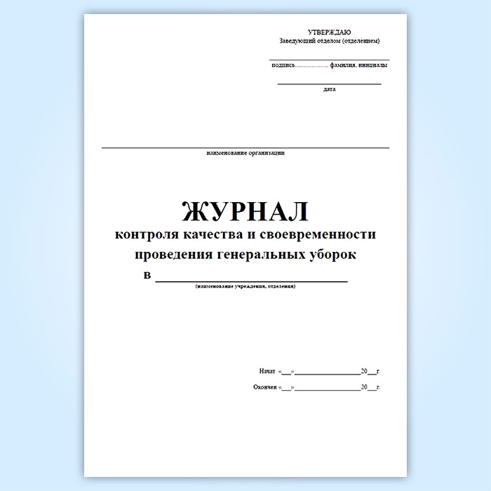 Журнал контроля качества и своевременности проведения генеральных уборок в Верее купить