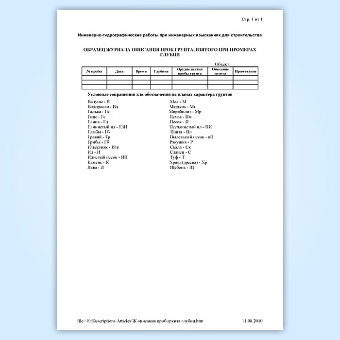 Журнал описания проб грунта, взятого при промерах в Верее купить