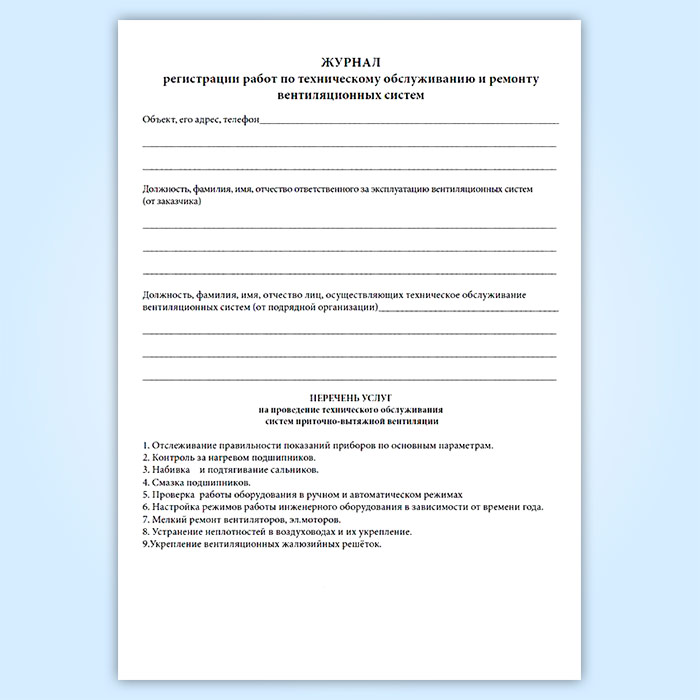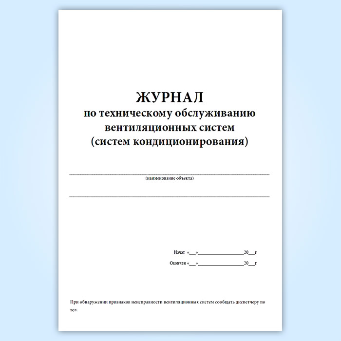 Журнал по техническому обслуживанию вентиляционных систем (систем кондиционирования) в Верее купить