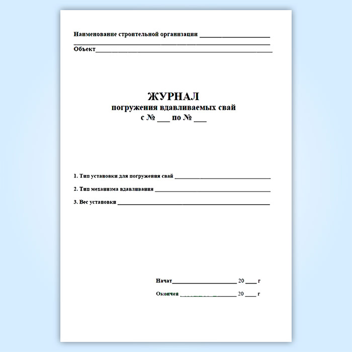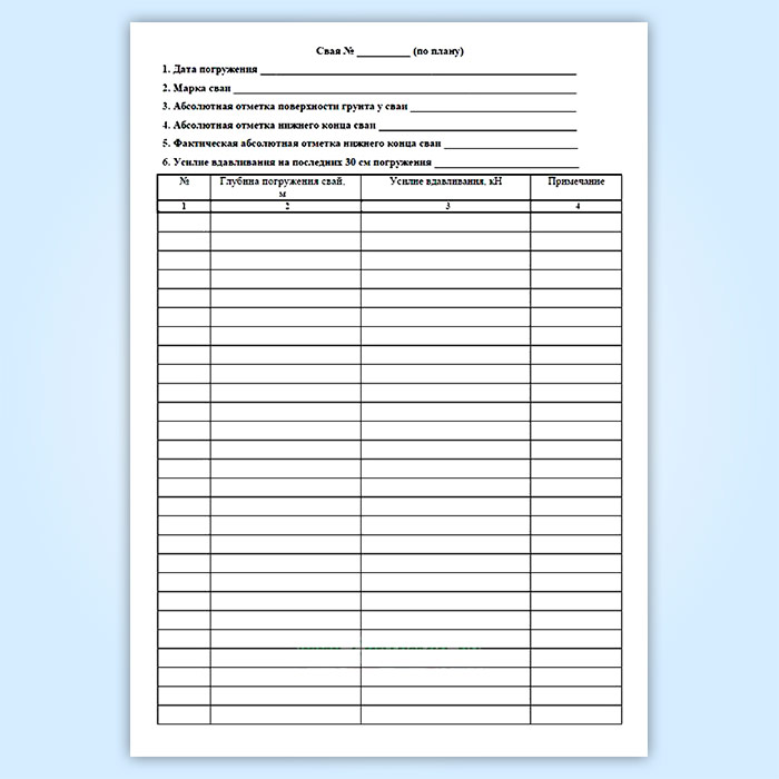 Журнал погружения вдавливаемых свай в Верее купить