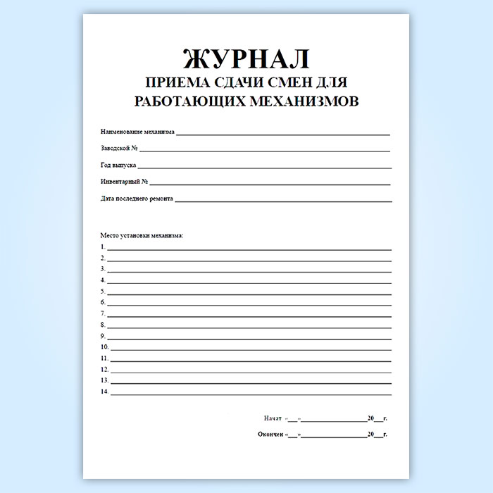 Журнал приема-сдачи смен для работающих на механизмах в Верее купить