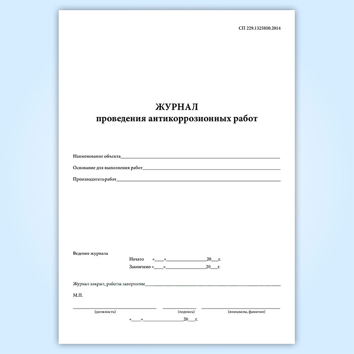 Журнал проведения антикоррозионных работ. СП 229.1325800.2014 в Верее купить