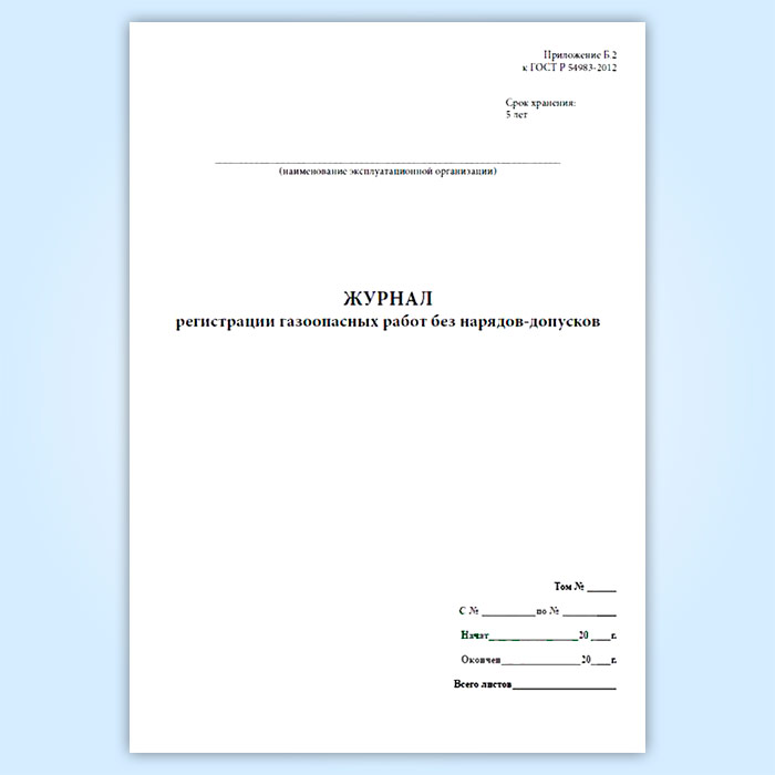 Журнал регистрации газоопасных работ без нарядов-допусков в Верее купить