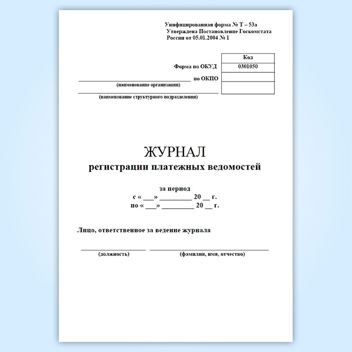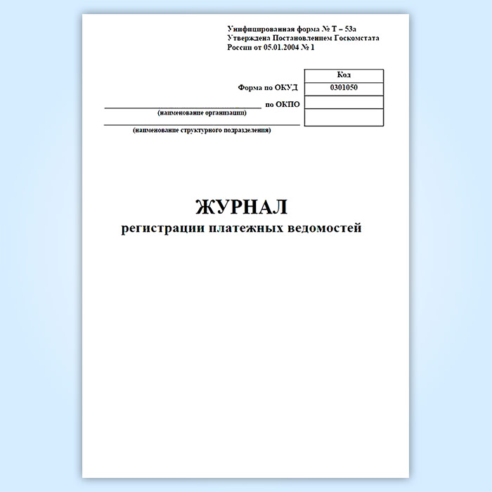 Журнал регистрации платежных ведомостей (унифицированная форма № Т-53а, форма по ОКУД 0301050) в Верее купить