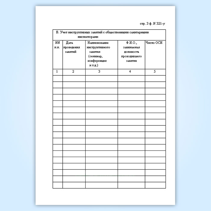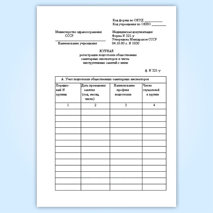 Журнал регистрации подготовки общественных санитарных инспекторов и числа инструктивных занятий с ними (форма № 321-у) в Верее купить