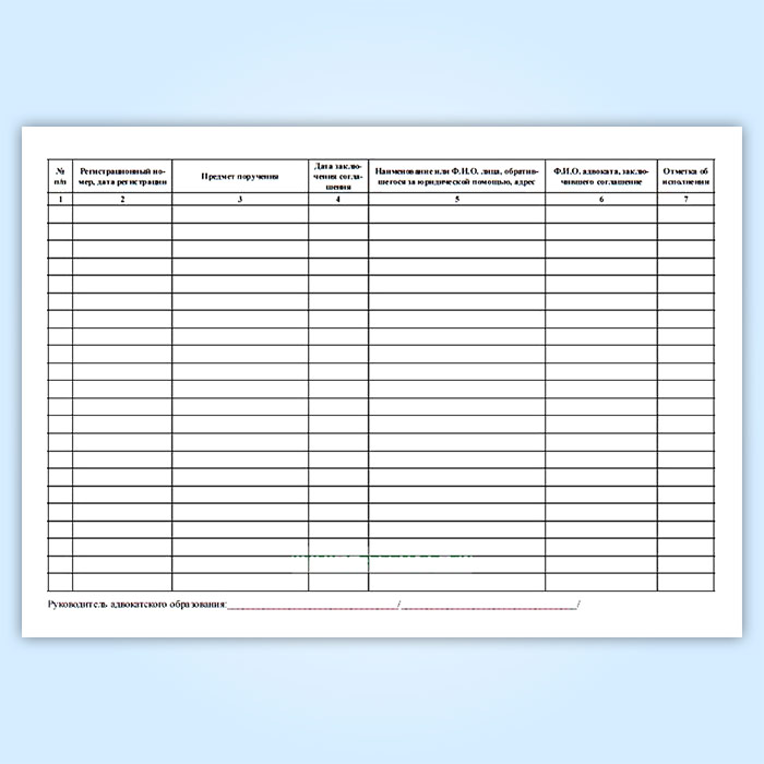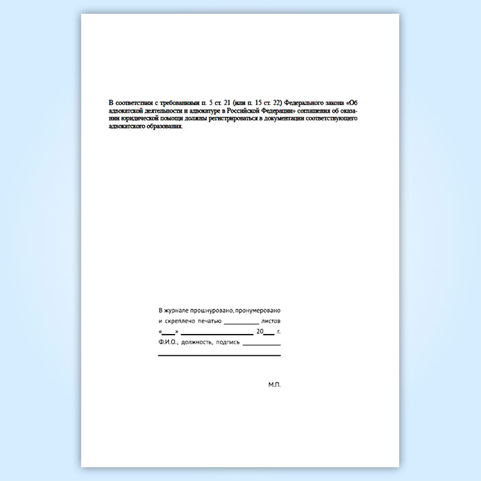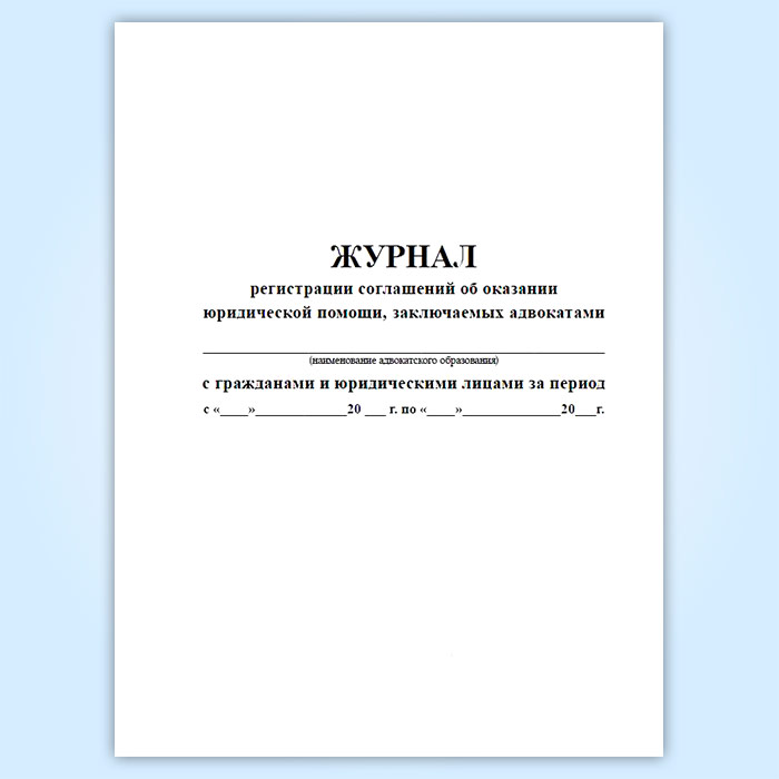 Журнал регистрации соглашений об оказании юридической помощи, заключаемых адвокатами с гражданами и юридическими лицами в Верее купить