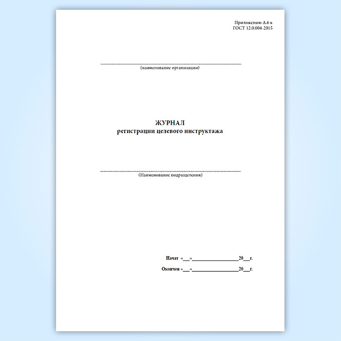 Журнал регистрации целевого инструктажа (ГОСТ 12.0.004-2015) в Верее купить