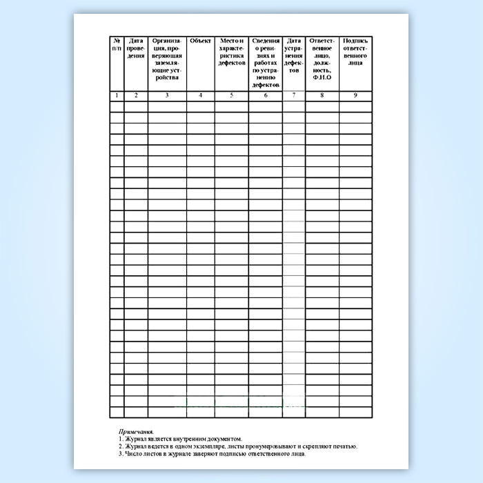 Журнал результатов ревизий устройств молниезащиты, проверочных испытаний заземляющих устройств (форма Б.30) в Верее купить