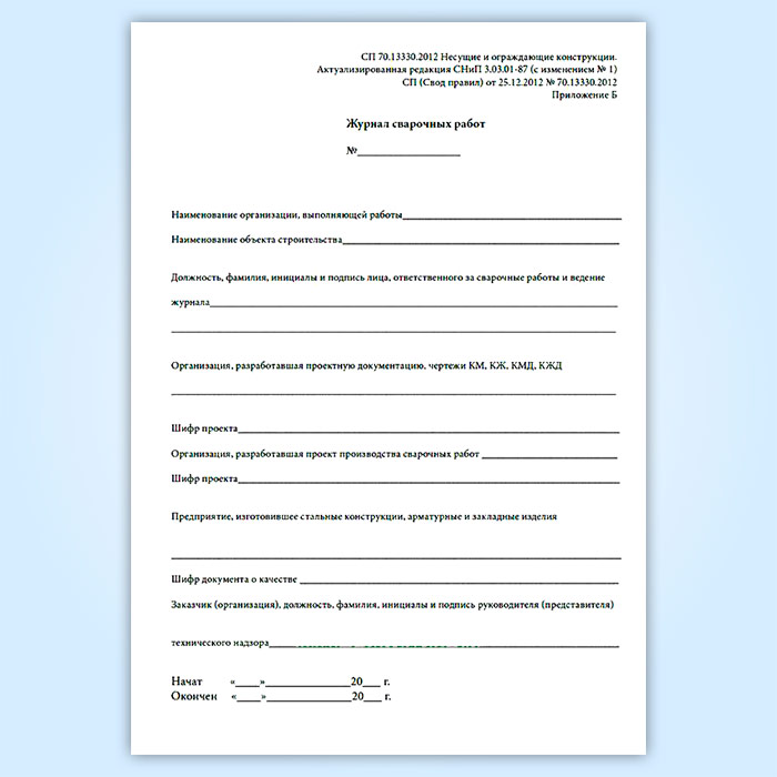Журнал сварочных работ (приложение к СП 70.13330.2012) в Верее купить