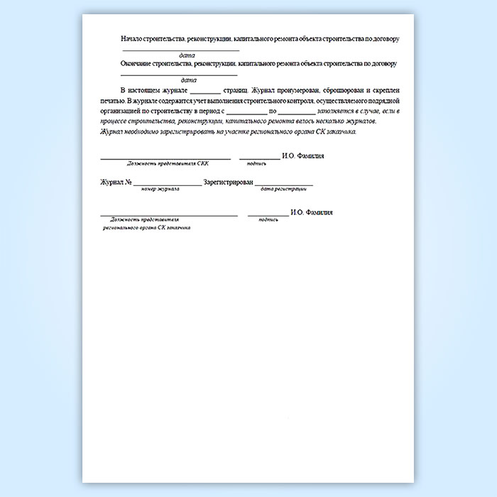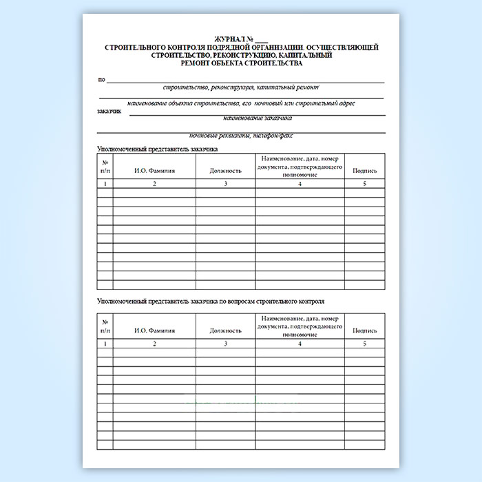 Журнал строительного контроля подрядной организации в Верее купить