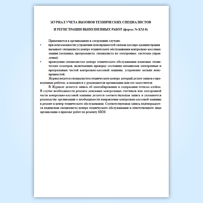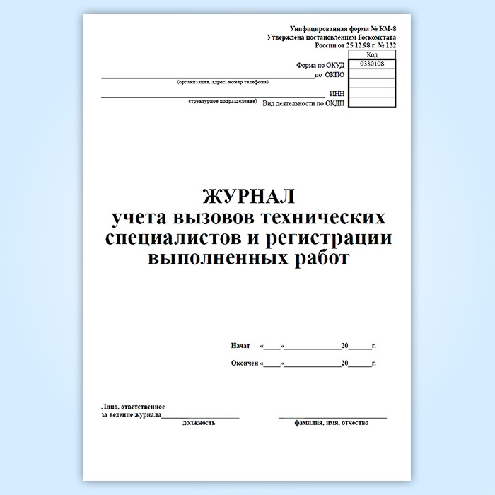 Журнал учета вызовов технических специалистов и регистрации выполненных работ (форма КМ-8) в Верее купить