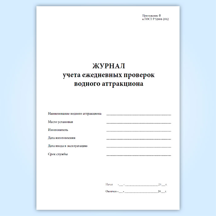 Журнал учета ежедневных проверок водного аттракциона в Верее купить