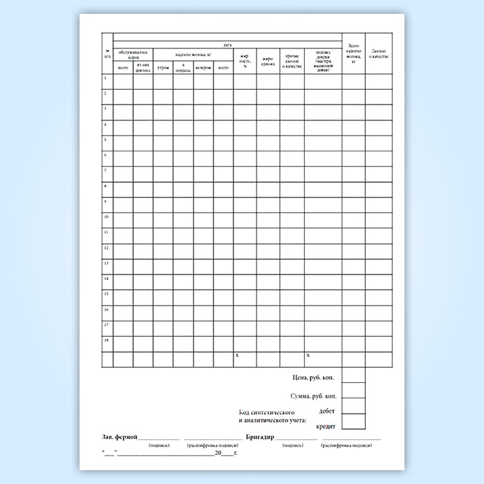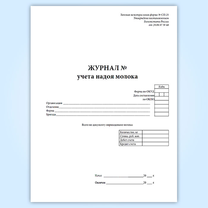 Журнал учета надоя молока (форма № СП-21) в Верее купить