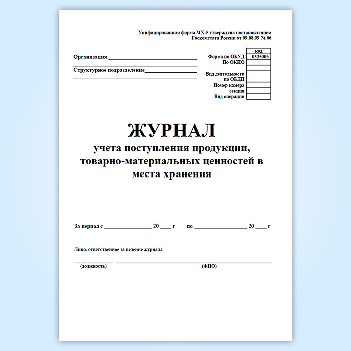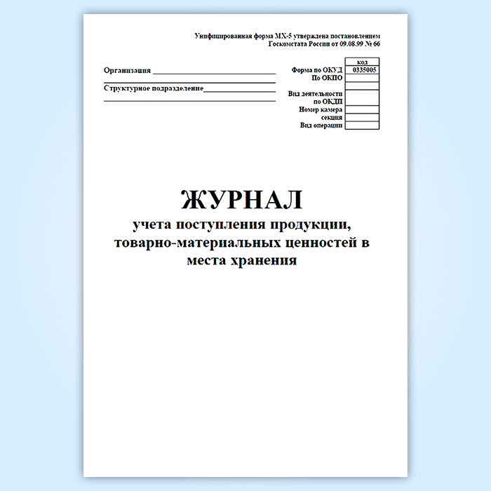 Журнал учета поступления продукции, товарно-материальных ценностей в места хранения (форма МХ-5) в Верее купить