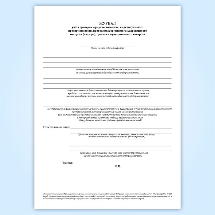 Журнал учета проверок юридического лица, индивидуального предпринимателя, проводимых органами государственного контроля (надзора), органами муниципального контроля (новый) в Верее купить