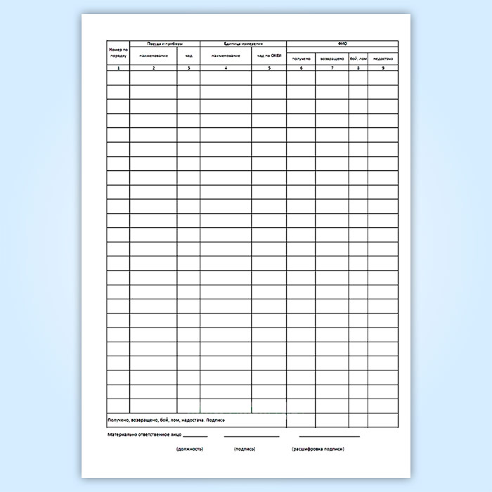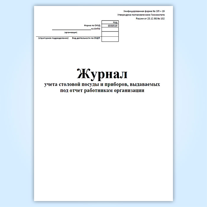 Журнал учета столовой посуды и приборов, выдаваемых под отчет работникам организации (форма № ОП-19) в Верее купить