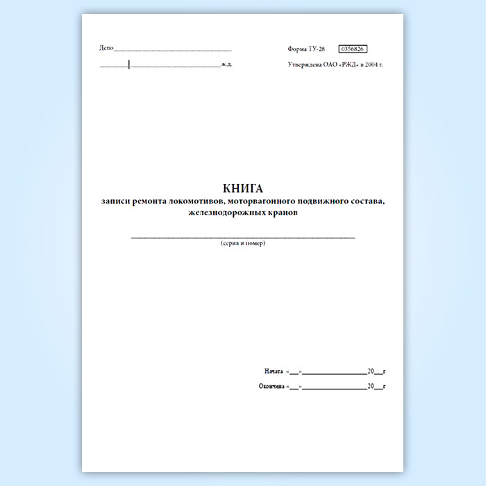 Книга записи ремонта локомотивов, моторвагонного подвижного состава железнодорожных кранов (ТУ-28) в Верее купить