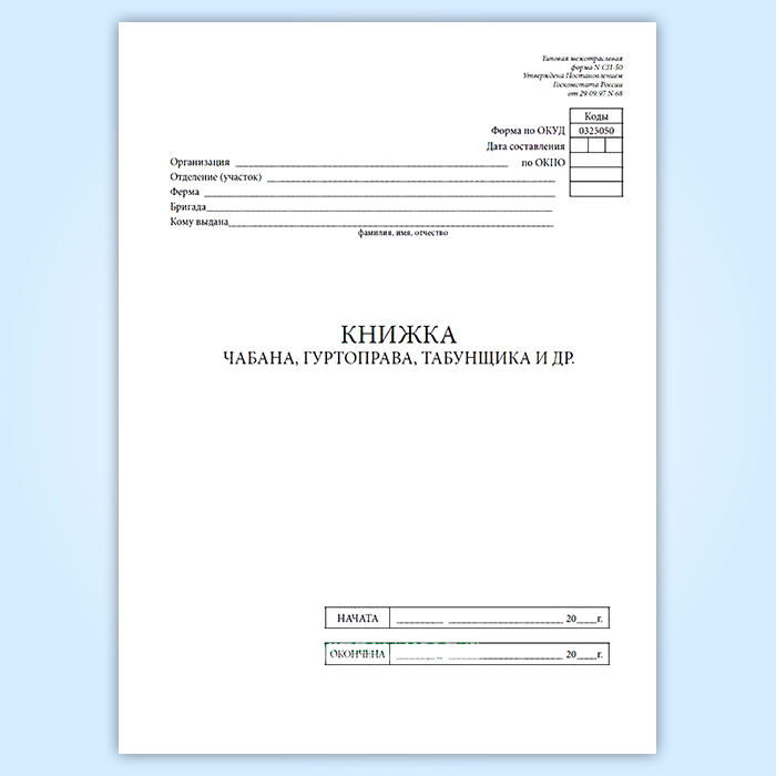 Книжка чабана, гуртоправа, табунщика и др. (форма № СП-50) в Верее купить