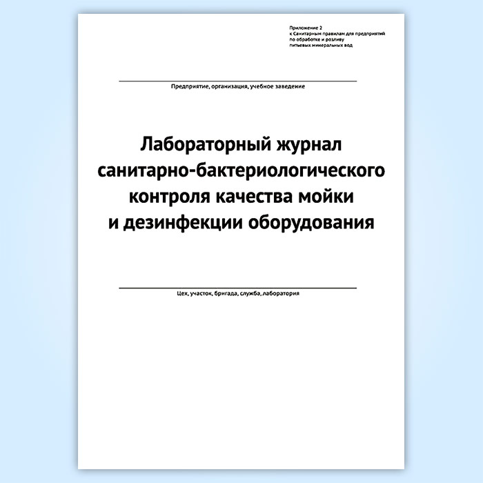 Лабораторный журнал санитарно-бактериологического контроля качества мойки и дезинфекции оборудования (форма 2) в Верее купить
