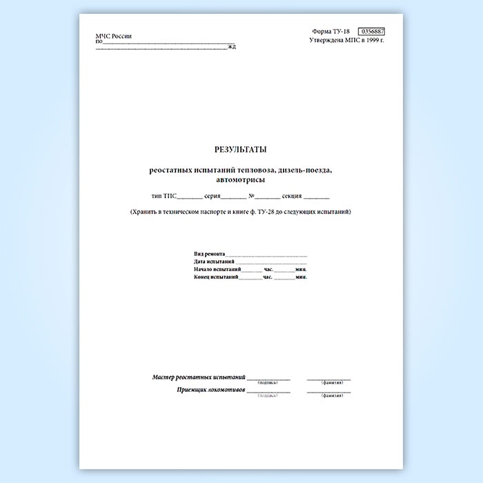 Результаты реостатных испытаний тепловоза, дизель-поезда, автомотрисы (форма ТУ-148) в Верее купить