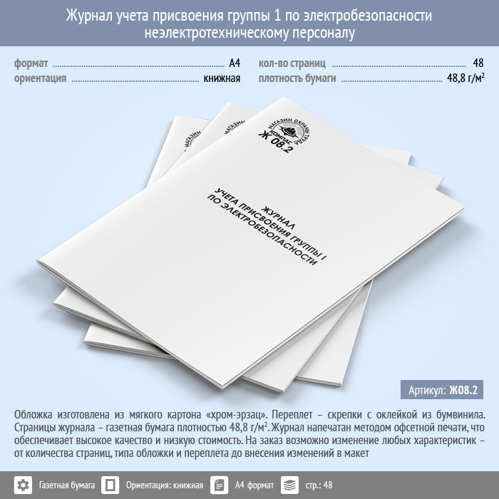 Журнал учета присвоения группы 1 по электробезопасности неэлектротехническому персоналу (48 стр., Ж08.2) в Верее купить
