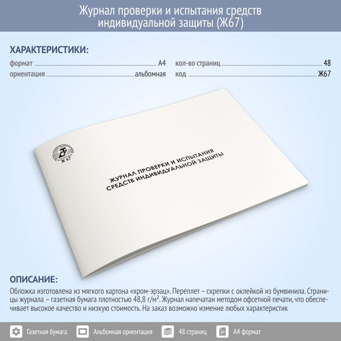 Журнал проверки и испытания средств индивидуальной защиты (48 стр., Ж67) в Верее купить