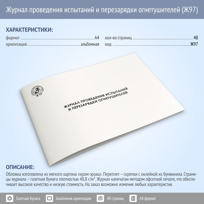 Журнал проведения испытаний и перезарядки огнетушителей (48 стр., Ж97) в Верее купить