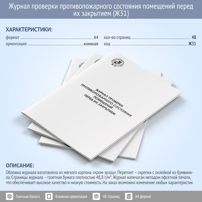 Журнал проверки противопожарного состояния помещений перед их закрытием (48 стр., Ж31) в Верее купить