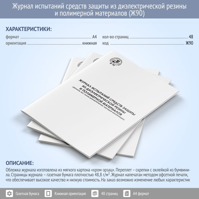 Журнал испытаний средств защиты из диэлектрической резины и полимерных материалов (48 стр., Ж90) в Верее купить