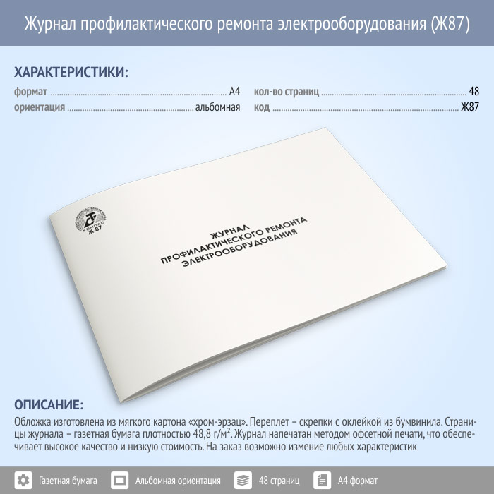 Журнал профилактического ремонта электрооборудования (48 стр., Ж87) в Верее купить
