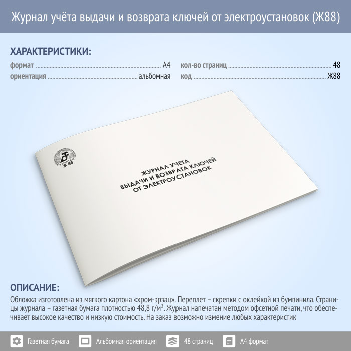 Журнал учета выдачи и возврата ключей от электроустановок (48 стр., Ж88) в Верее купить