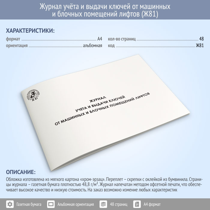 Журнал учета и выдачи ключей от машинных и блочных помещений лифтов (48 стр., Ж81) в Верее купить