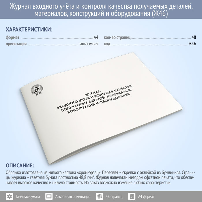 Журнал входного учета и контроля качества получаемых деталей, материалов, конструкций и оборудования (48 стр., Ж46) в Верее купить