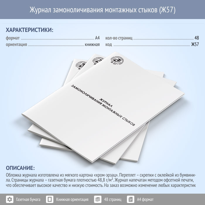 Журнал замоноличивания монтажных стыков (48 стр., Ж57) в Верее купить