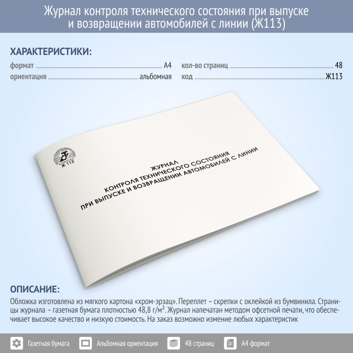 Журнал контроля технического состояния при выпуске и возвращении автомобилей с линии (48 стр., Ж113) в Верее купить
