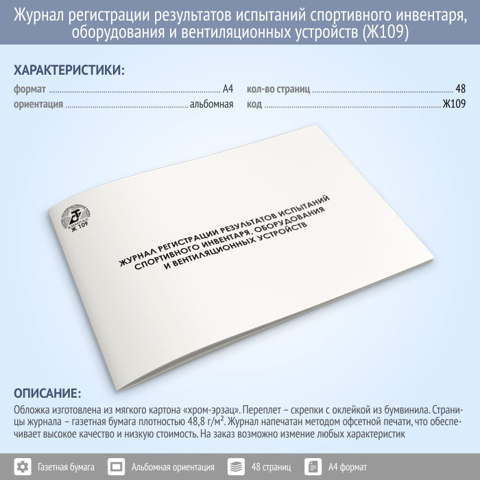 Журнал регистрации результатов испытаний спортивного инвентаря, оборудования и вентиляционных устройств (48 стр., Ж109) в Верее купить
