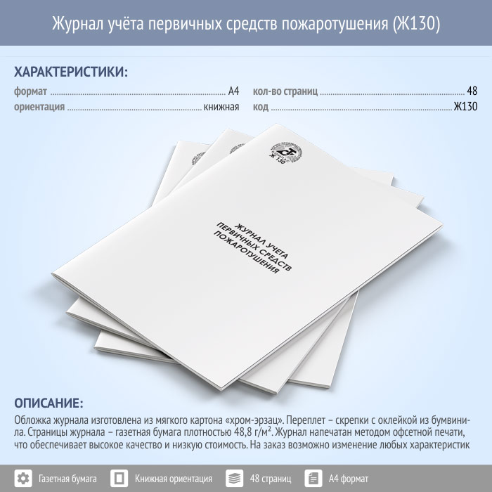 Журнал учета первичных средств пожаротушения (48 стр., Ж130) в Верее купить