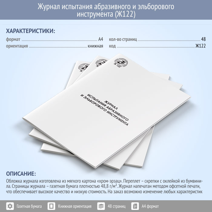 Журнал испытания абразивного и эльборового инструмента (48 стр., Ж122) в Верее купить