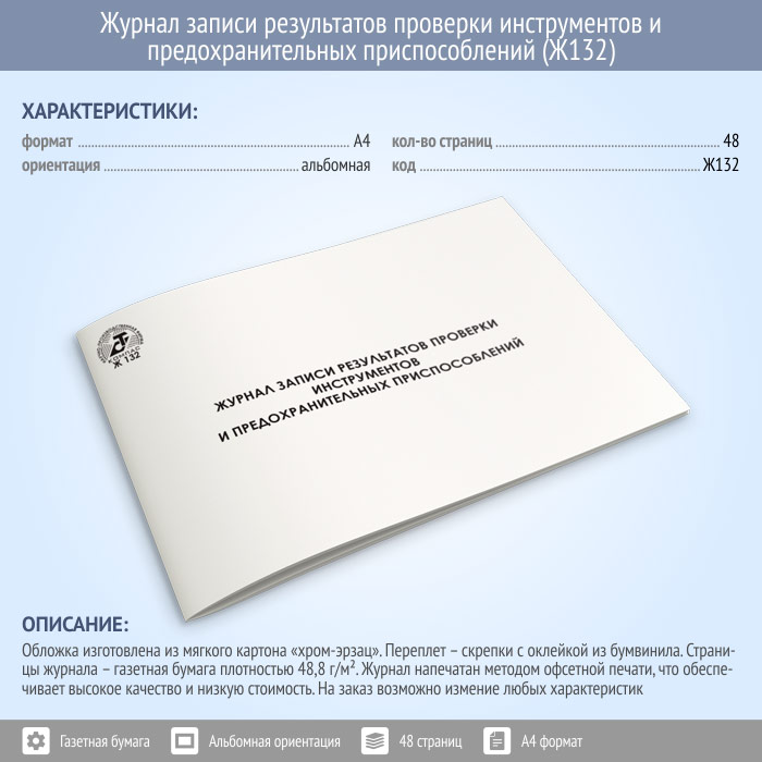 Журнал записи результатов проверки инструментов и предохранительных приспособлений (48 стр., Ж132) в Верее купить