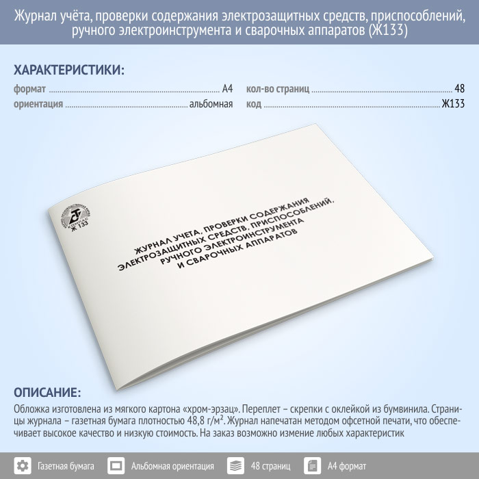 Журнал учета проверки и содержания электрозащитных средств, приспособлений, ручного электроинструмента и сварочных аппаратов (48 стр., Ж133) в Верее купить