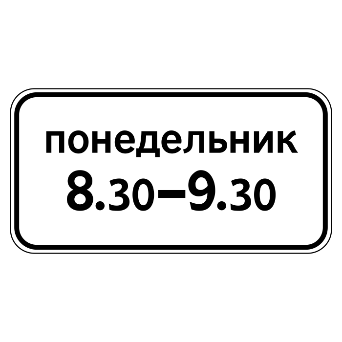 Дорожный знак 8.5.7 «Время действия» (металл 0,8 мм, III типоразмер: 450х900 мм, С/О пленка: тип Б высокоинтенсивная) в Верее купить