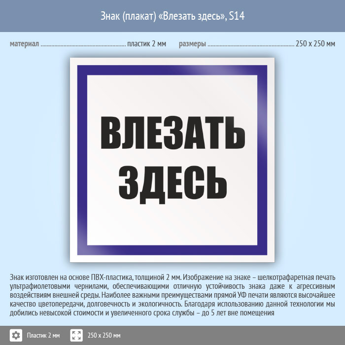 Знак (плакат) «Влезать здесь», S14 (пластик, 250х250 мм) в Верее купить