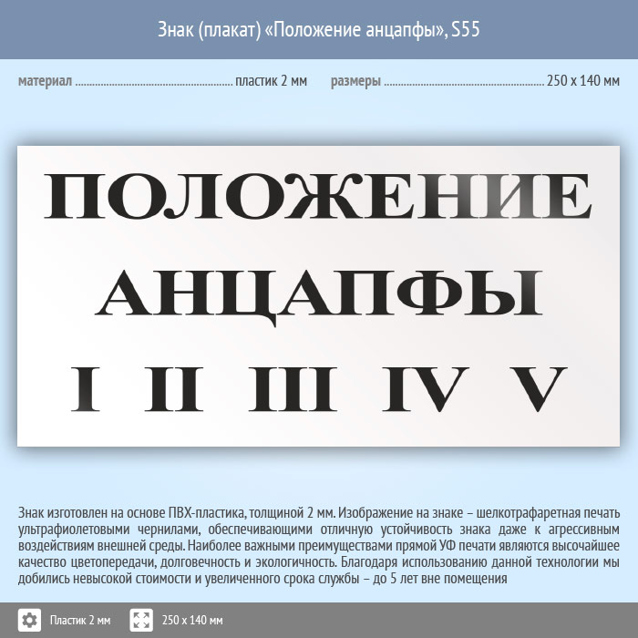 Знак (плакат) «Положение анцапфы», S55 (пластик, 250х140 мм) в Верее купить