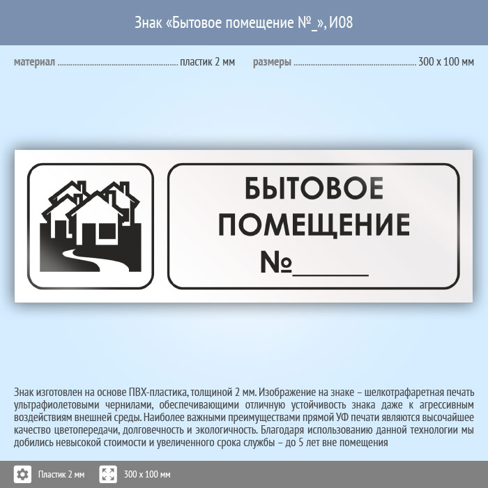 Знак «Бытовое помещение №_», И08 (пластик, 300х100 мм) в Верее купить