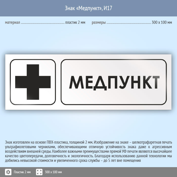 Знак «Медпункт», И17 (пластик, 300х100 мм) в Верее купить