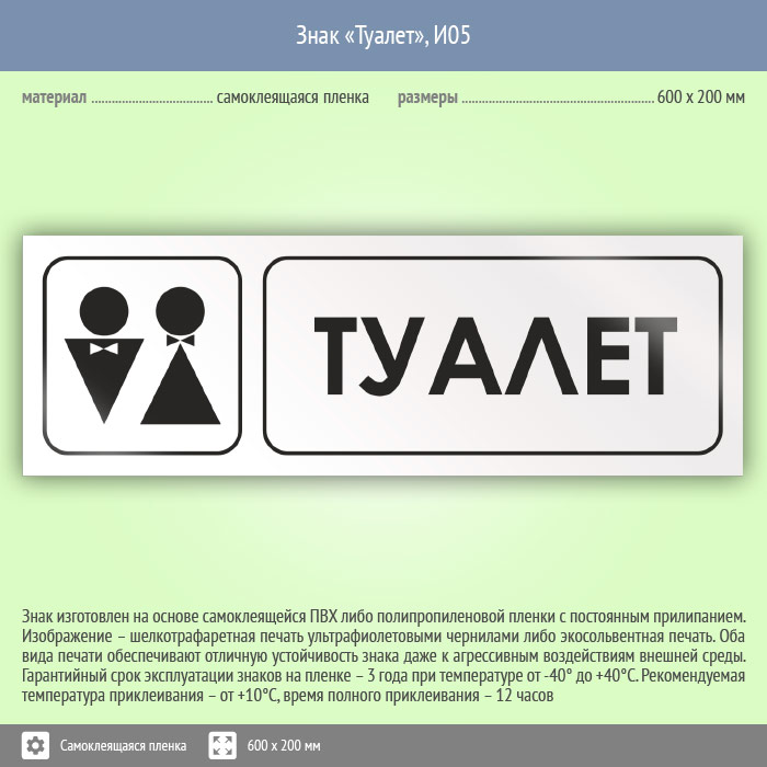 Знак «Туалет», И05 (пленка, 600х200 мм) в Верее купить