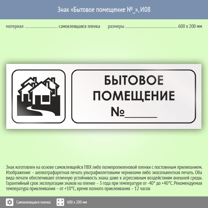 Знак «Бытовое помещение №_», И08 (пленка, 600х200 мм) в Верее купить