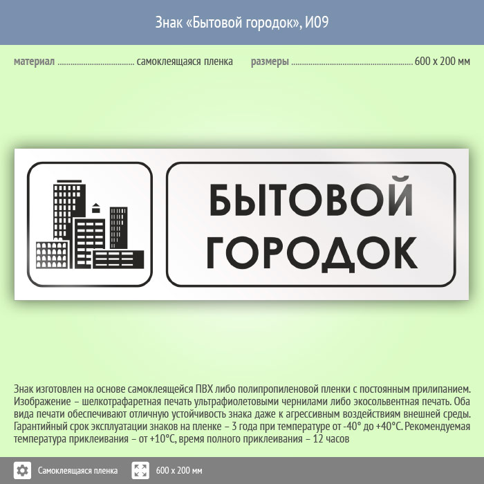 Знак «Бытовой городок», И09 (пленка, 600х200 мм) в Верее купить