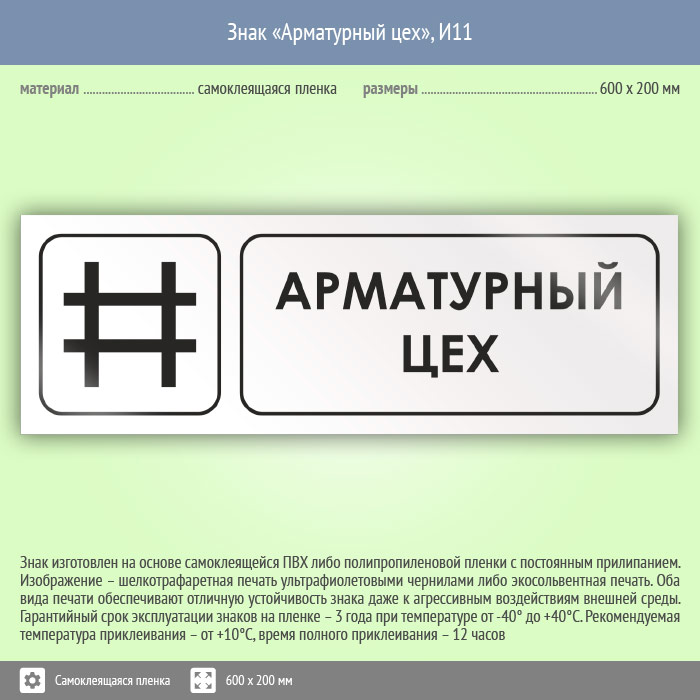 Знак «Арматурный цех», И11 (пленка, 600х200 мм) в Верее купить